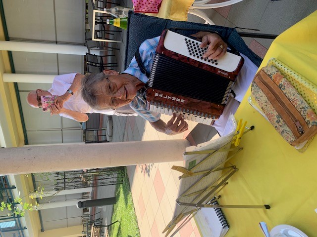 Letztens wurde im SeneCura Sozialzentrum Dornbirn ein besonderer Herzenswunsch von der Bewohnerin Ella Spettel erfüllt. Sie wünschte sich eine ausgiebige Geburtstagsfeier mit ihrer Familie und den Bewohner:innen aus ihrem Wohnbereich. Zu ihrem stolzen 92. Geburtstag wurde dieser Wunsch zur Realität und es wurde ein besonderes Fest für die Jubilarin Ella Spettel organisiert. Das gemütliche Beisammensein wurde von den schönen Liedern, die von der ehrenamtlichen Harmonika-Spielerin Erna zum Besten gegeben wurden, begleitet. Bei strahlendem Sonnenschein war es ein herzliches Gartenfest mit Kuchen, Brötchen und dem ein oder anderen Glas Sekt.