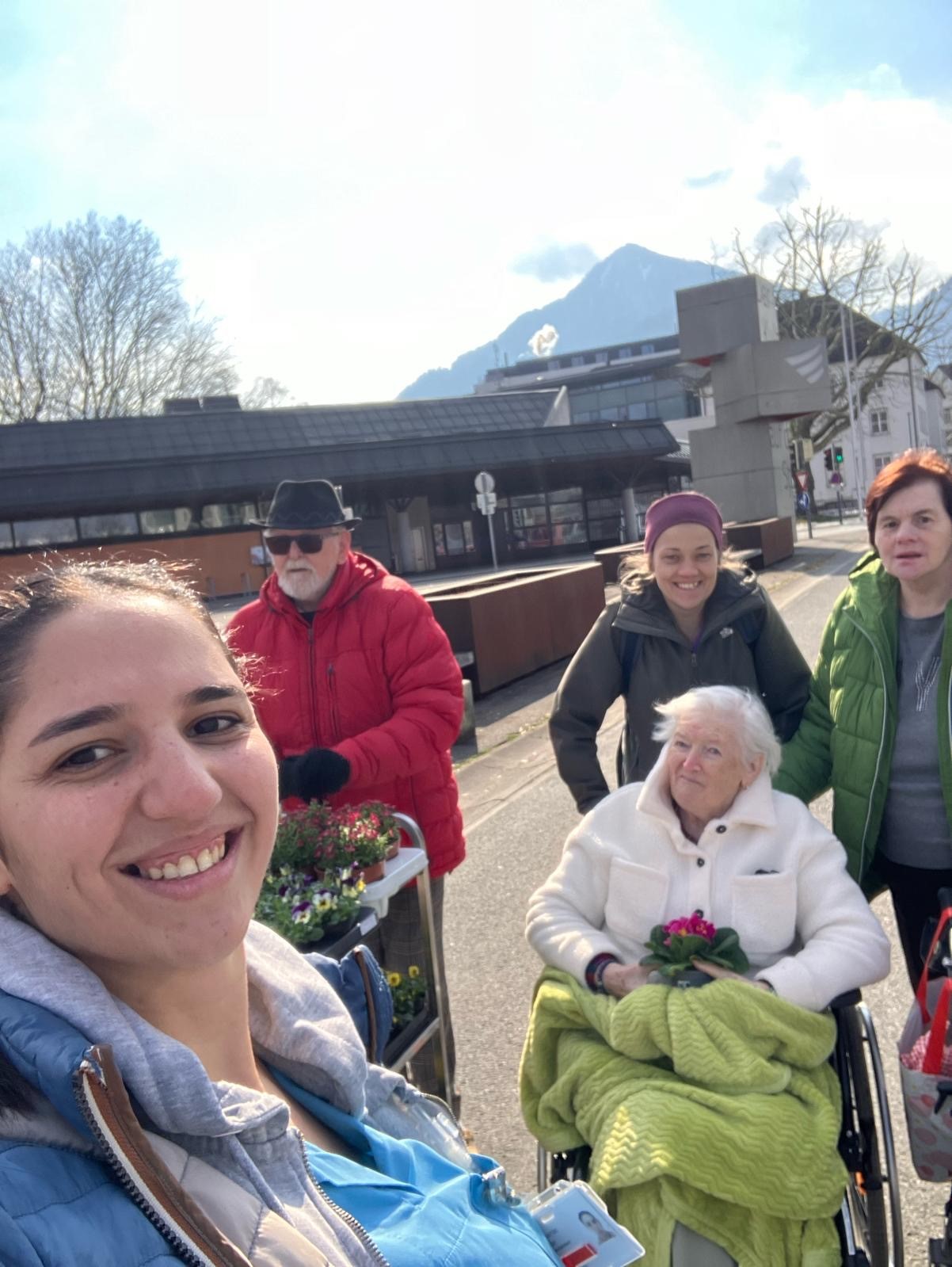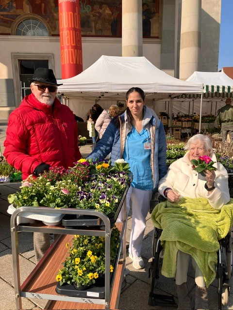 Für frühlingshafte Farben auf den Balkonen des SeneCura Sozialzentrums Dornbirn machten sich die Bewohner:innen mit der Mitarbeiterin Anja auf den Weg zum Blumenmarkt. Mit viel Freude wurden bunte Frühlingsblumen ausgesucht, die nun die Balkonkästen in neuem Glanz erstrahlen lassen. Es war ein rundum schöner Ausflug, der die Vorfreude auf den kommenden Frühling nur steigen ließ.