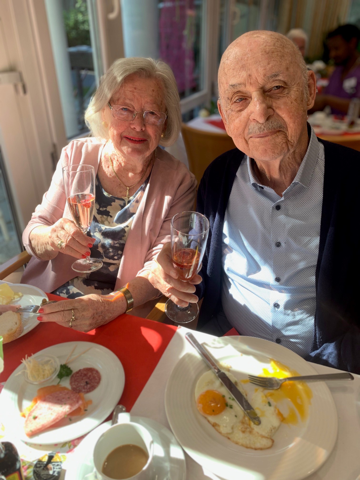 Das Ambiente des Frühstücks wurde durch die liebevolle Dekoration mit weißen, rosa und roten Rosen noch weiter verschönert, was für eine festliche und herzliche Atmosphäre sorgte. Und ein Gläschen Sekt durfte natürlich auch nicht fehlen!