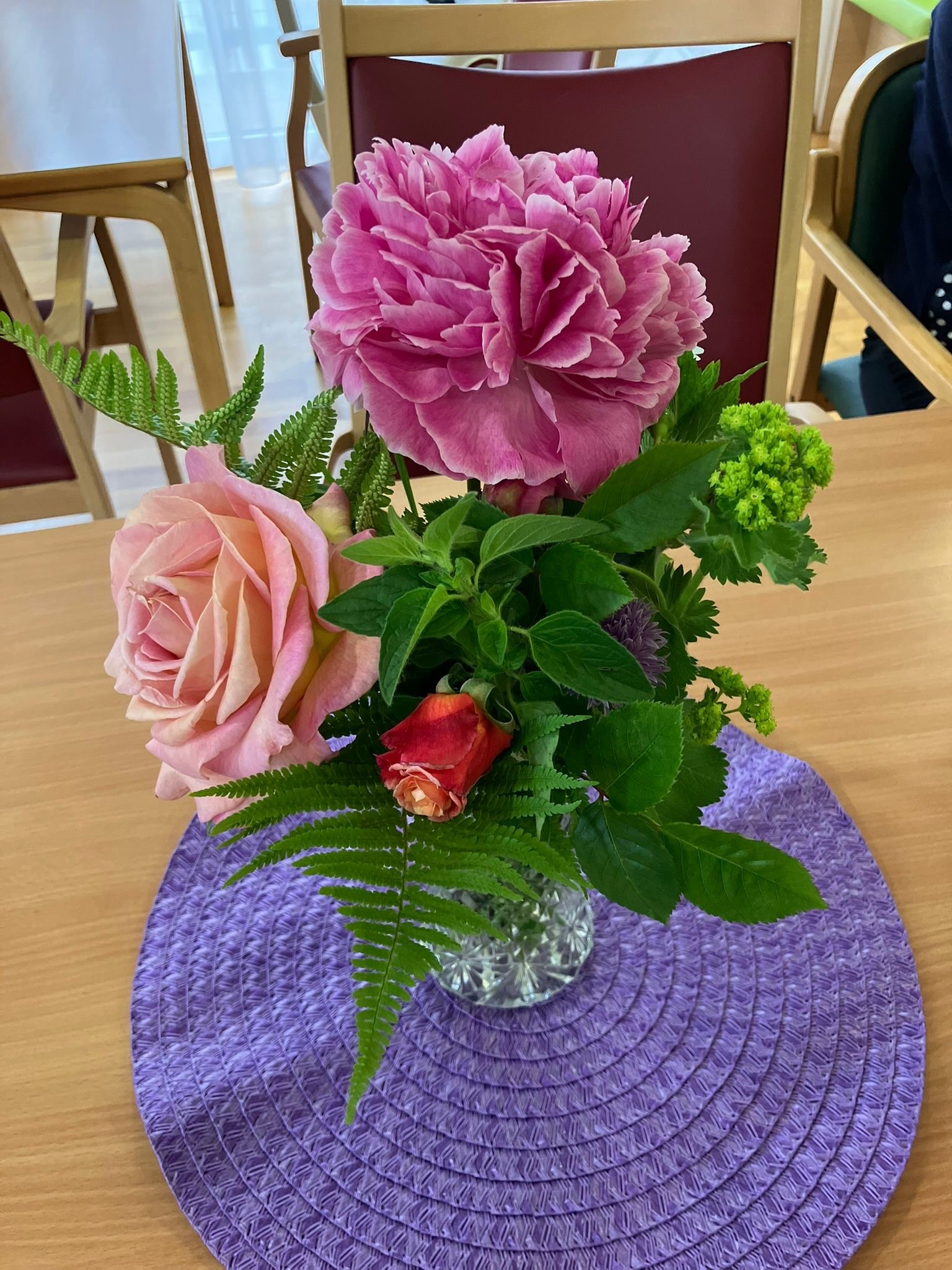 Mit Rosen, Pfingstrosen und weiteren bunten Blumen zauberte sie farbenfrohe Akzente in unsere Gemeinschaftsräume und brachte Frische sowie Freude in den Alltag unserer Bewohnerinnen und Bewohner.