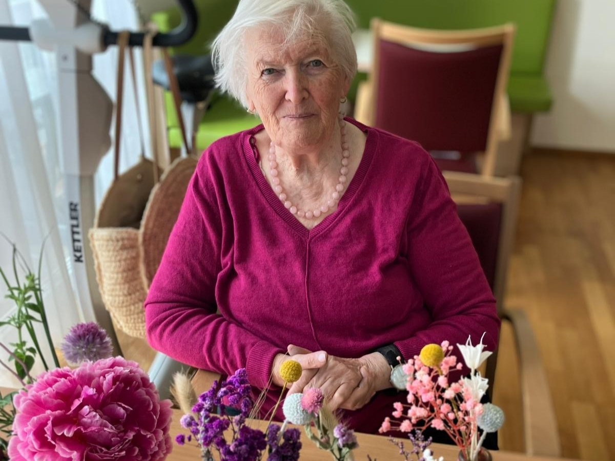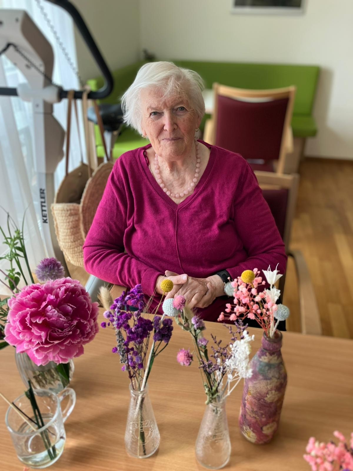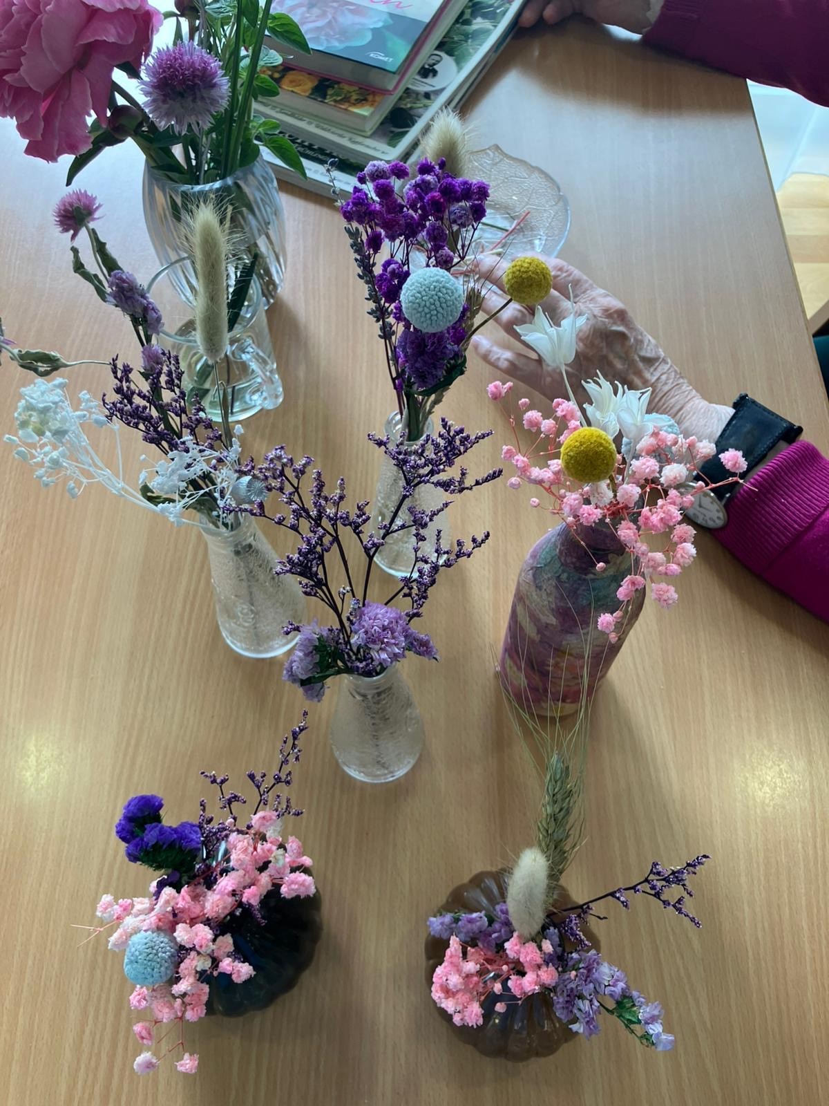 Diesmal arrangierte sie bunte Trockenblumen in kleinen Glasvasen und setzte damit stilvolle, sommerliche Akzente in unseren Gemeinschaftsräumen. Die farbenfrohen Arrangements sorgen für gute Laune und verleihen dem Haus eine warme, einladende Atmosphäre.