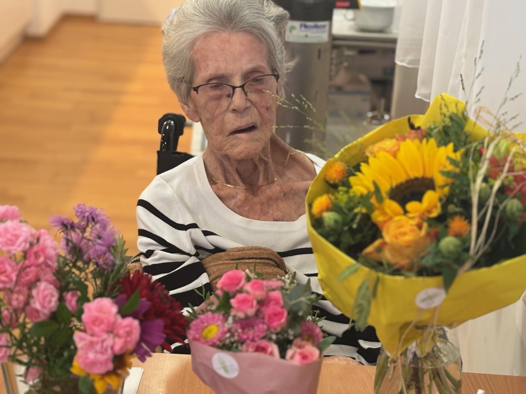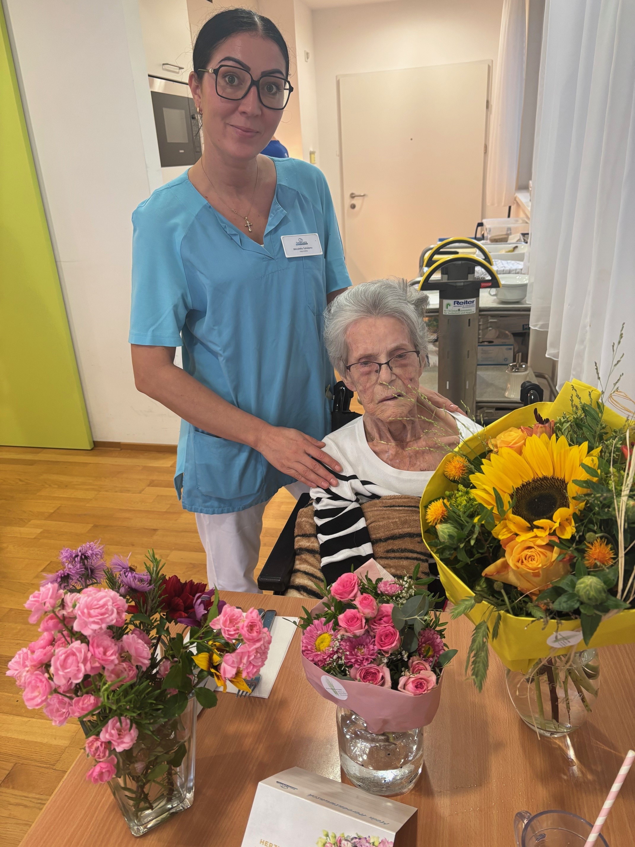Mit Blumen, lieben Glückwünschen und einer gemütlichen Feier wurde Frau Bampi an ihrem Ehrentag geehrt. Die Jubilarin freute sich sichtlich über die herzliche Aufmerksamkeit und die vielen kleinen Aufmerksamkeiten, die ihr diesen Tag unvergesslich machten.