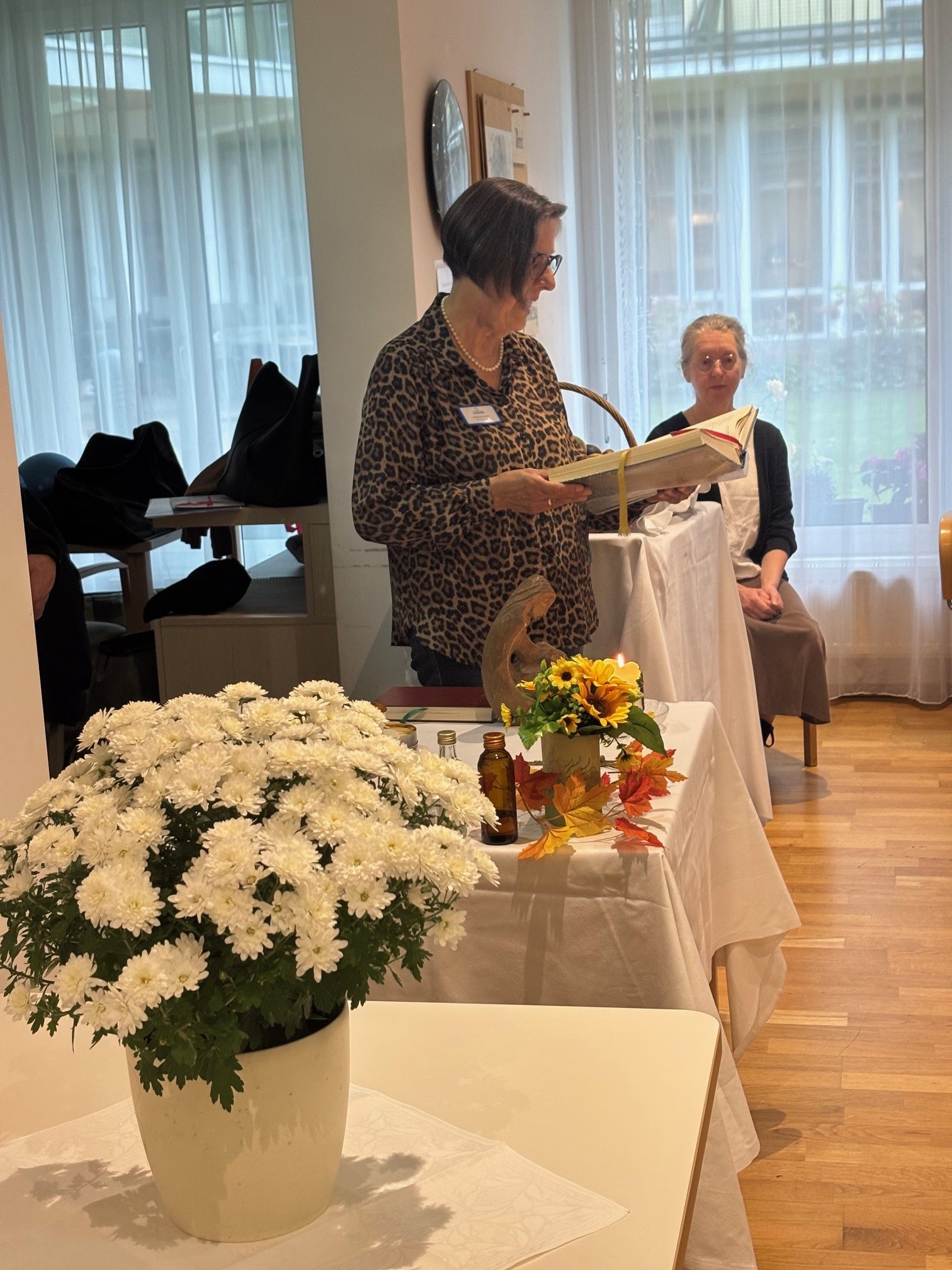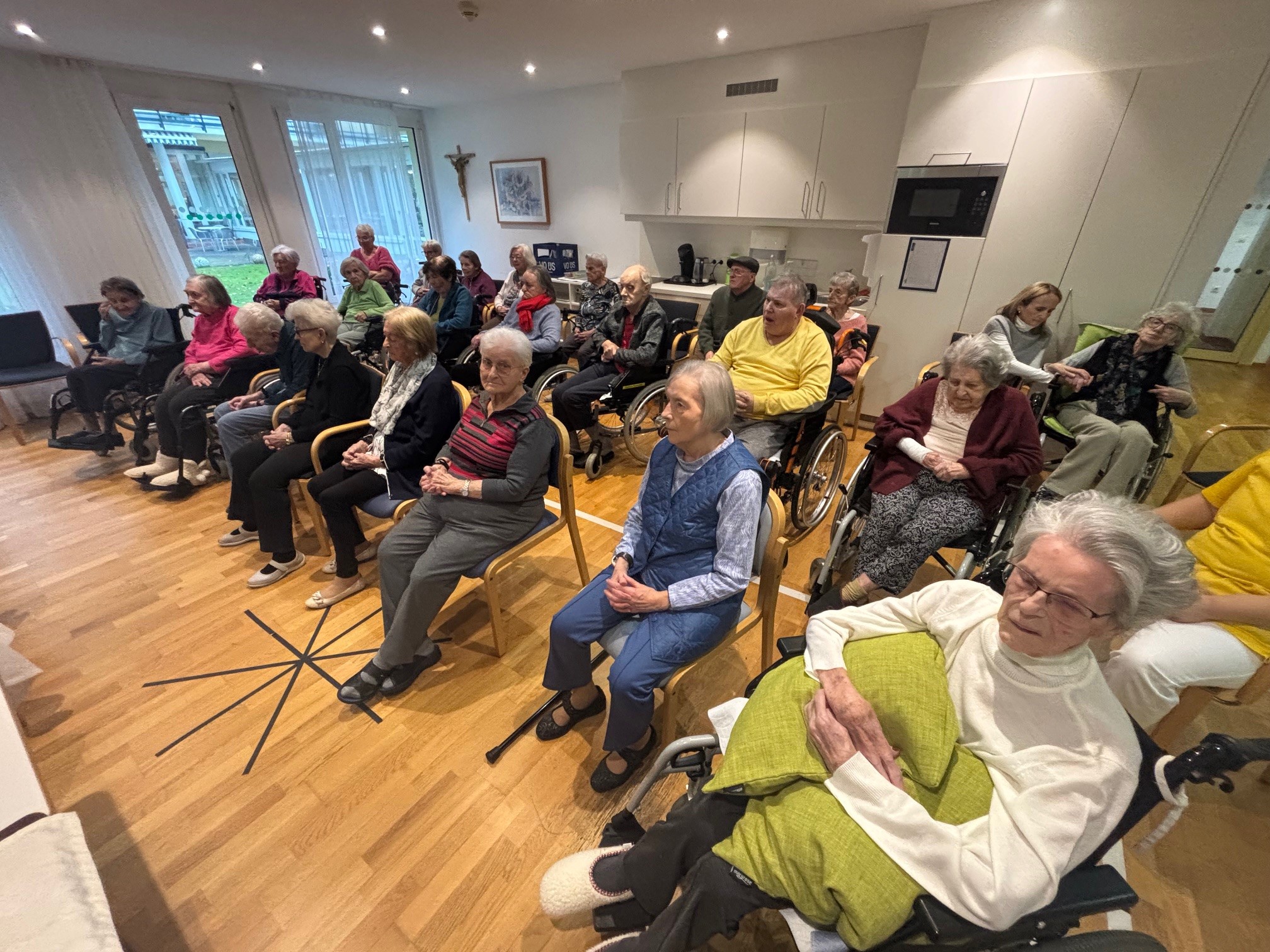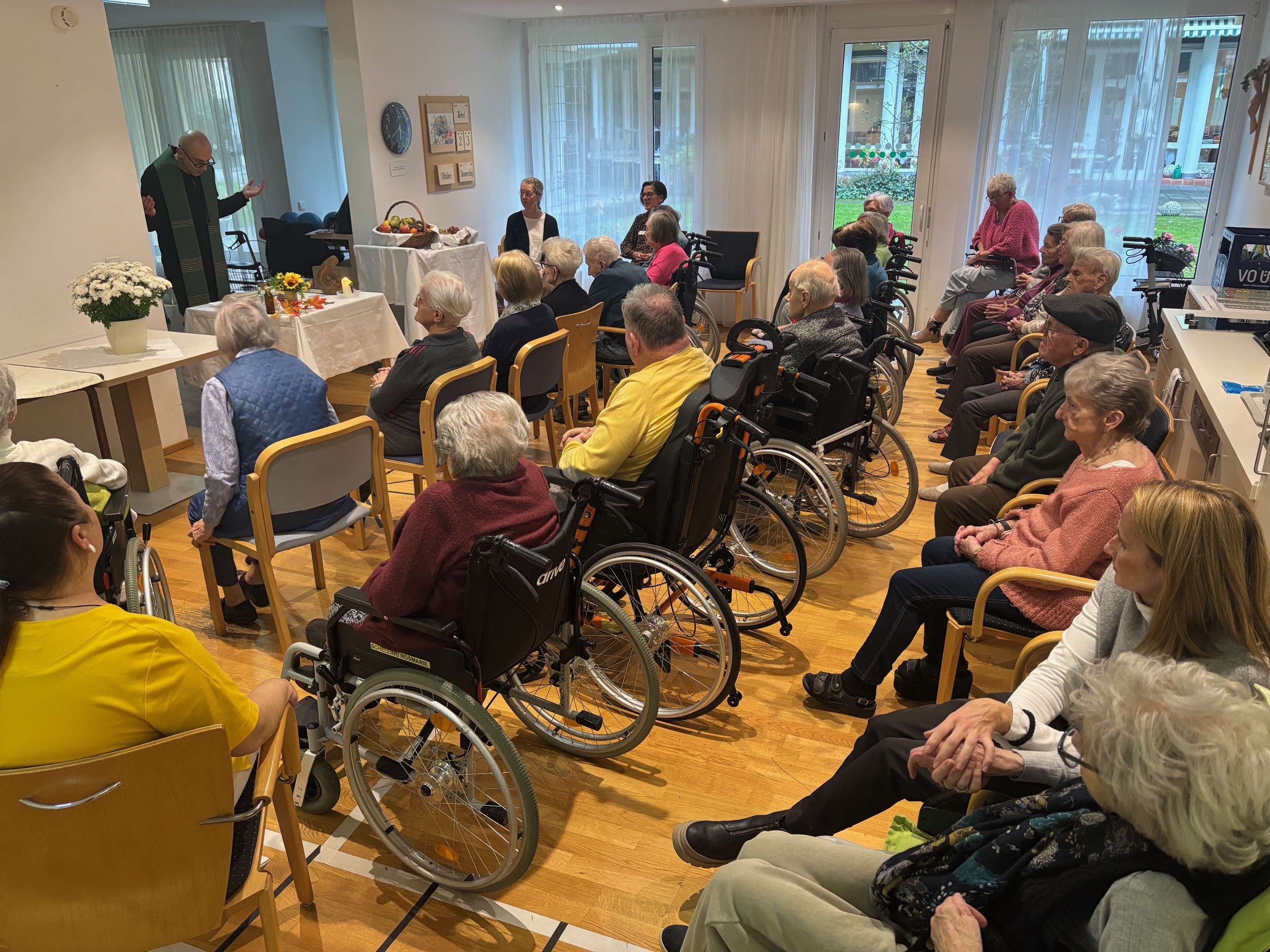 Gemeinsam gedachten wir all der Gaben, die uns das Jahr über geschenkt hat, und dankten für Gesundheit, Gemeinschaft und die schönen Momente des Lebens. Die musikalische Begleitung sorgte für eine besonders feierliche Stimmung, und viele Bewohner:innen sangen die bekannten Lieder mit.